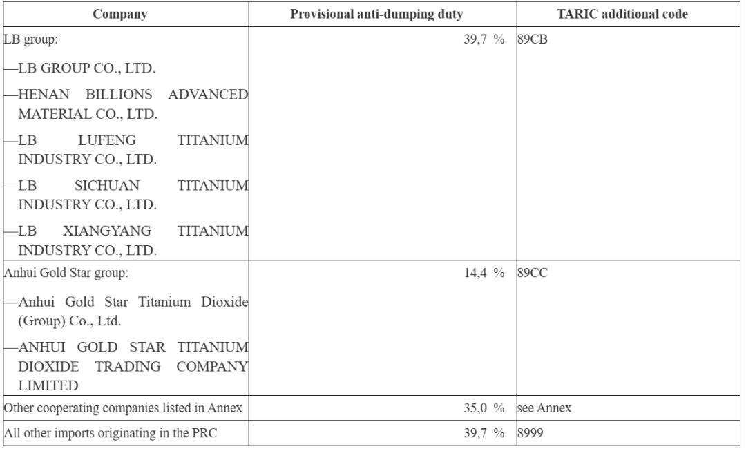 而此次欧盟对原产于中国的钛白粉征收临时反倾销税,其实是在2023年9月底欧洲钛白粉特设联盟(投诉人)向欧盟委员会提出投诉并随后开始调查之后采取的。