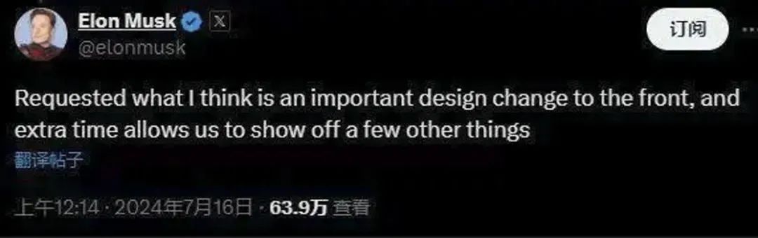 本周,马斯克则亲自下场实锤,“特斯拉要花更多的时间,对车辆进行一些设计更改。”不过,十分微妙的是,其并没有给出新的发布节点。