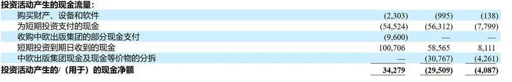 招股书显示,2022 年和 2023 年,中欧国际工商学院贡献的收入分别为 8460 万元和9940 万元。截至今年第一季度,分拆中欧国际工商学院造成的大量投资活动现金流流出。