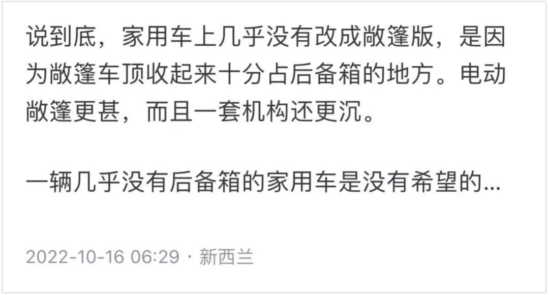 就像这条知乎回复:“一辆几乎没有后备箱的家用车是没有希望的。”