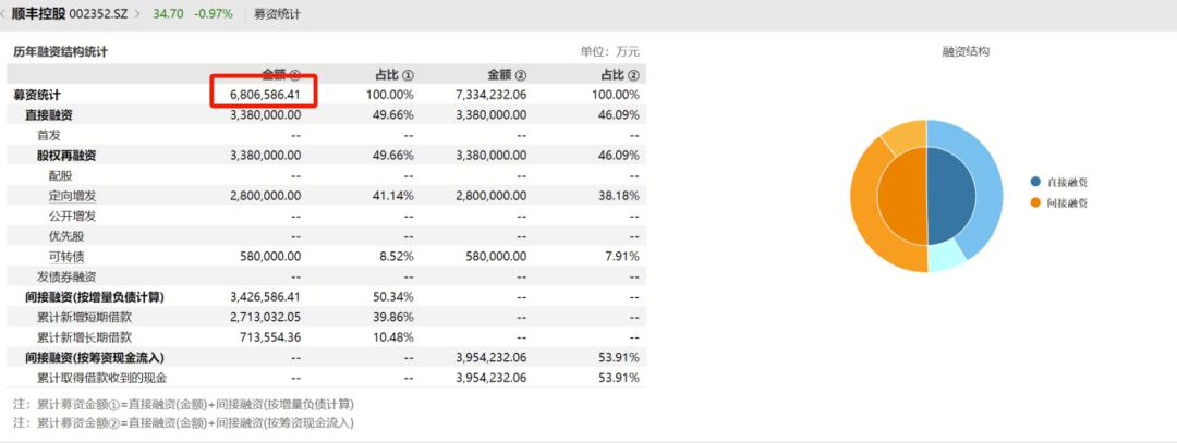 实际上,据wind数据显示,自2017年上市以来,顺丰已经通过定增、可转债、短期借款等多种方式,累计募集资金达到680.66亿元。