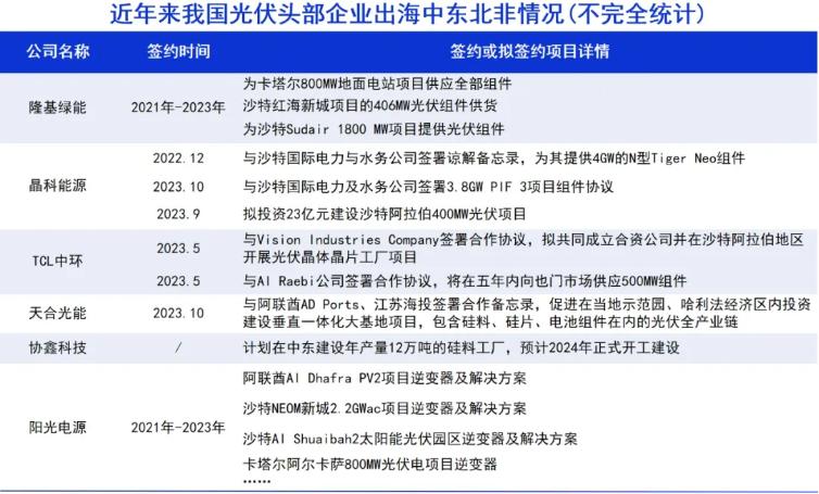 2023年,我国对沙特的光伏组件出口总额比上一年暴涨了3倍,隆基绿能、TCL中环、协鑫科技等中国光伏企业,正排队在沙特建厂。