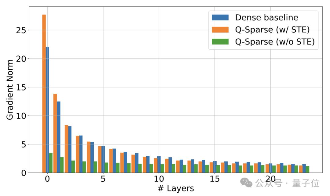 该方法名为Q-Sparse,在神经元级别上实现了模型稀疏化,相比于其他方式粒度更细,在相同推理开销下,无论性能还是稀疏率都更好。