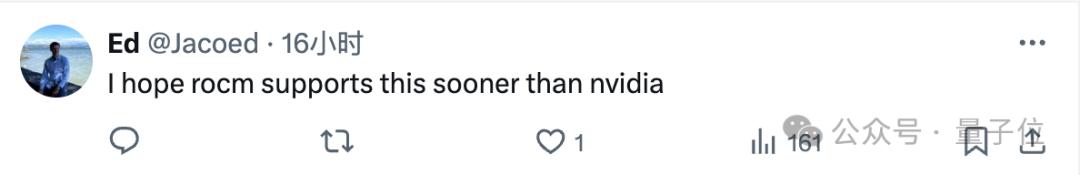 还有人开启了许愿模式,表示如果(AMD的)ROCm能比英伟达更快支持这项技术就好了。