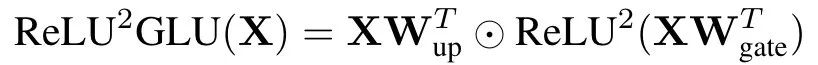 对于前馈层,Q-Sparse使用平方ReLU函数代替常规的ReLU激活函数,平方运算可以进一步提高激活的稀疏性(⊙表示Hadamard积)。
