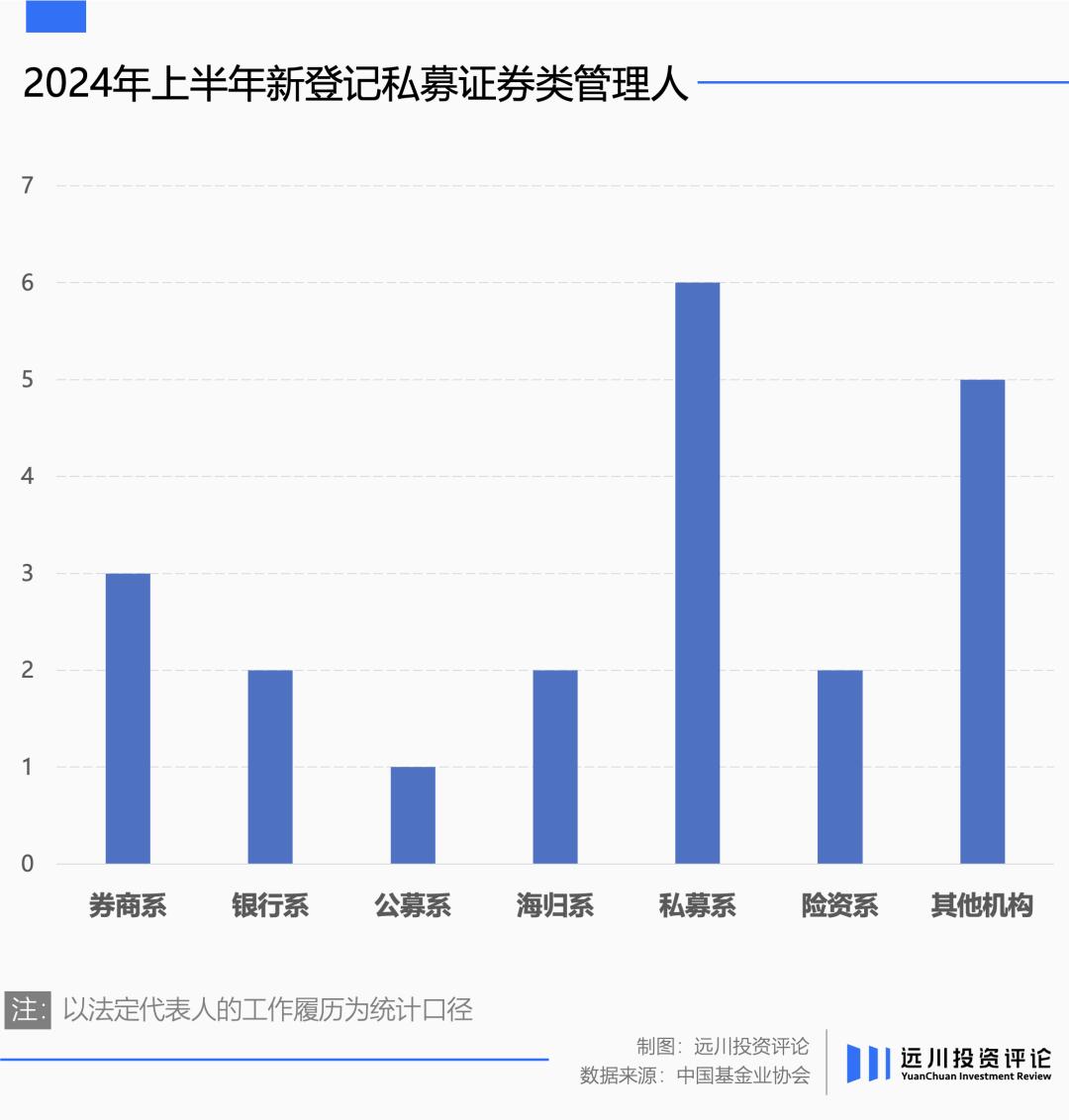 截至2024年6月30日,今年上半年在中国基金业协会上新登记的私募证券投资基金管理人共计只有21家。如果以法定代表人履历里的上一份工作来进行区分的话,「公募派」背景的新私募只有1家——原南方基金的基金经理李振兴创办的深圳星海元私募基金。