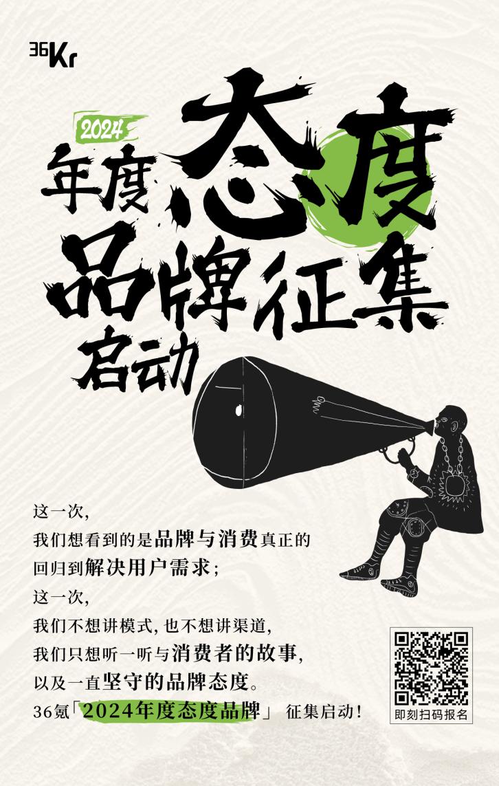 为此,36氪发起《2024年度态度品牌》征集活动,致力于寻找能够对消费人群的需求、情绪和文化作出反应,通过帮助人、社区和地球来承担责任的“态度品牌”,并将于特昂节活动现场正式重磅发布。