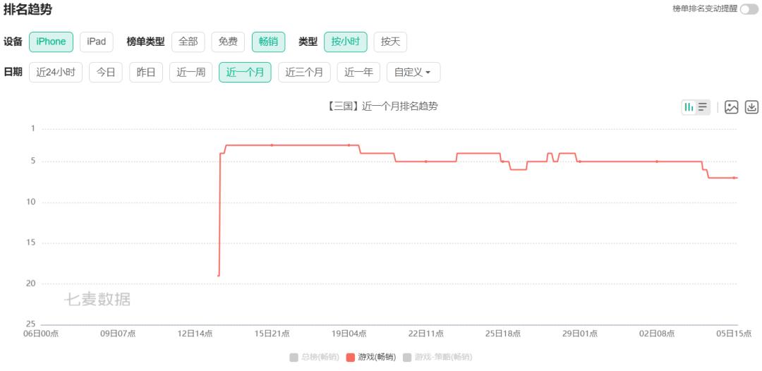 《三国:谋定天下》近一个月成绩相当稳定且突出