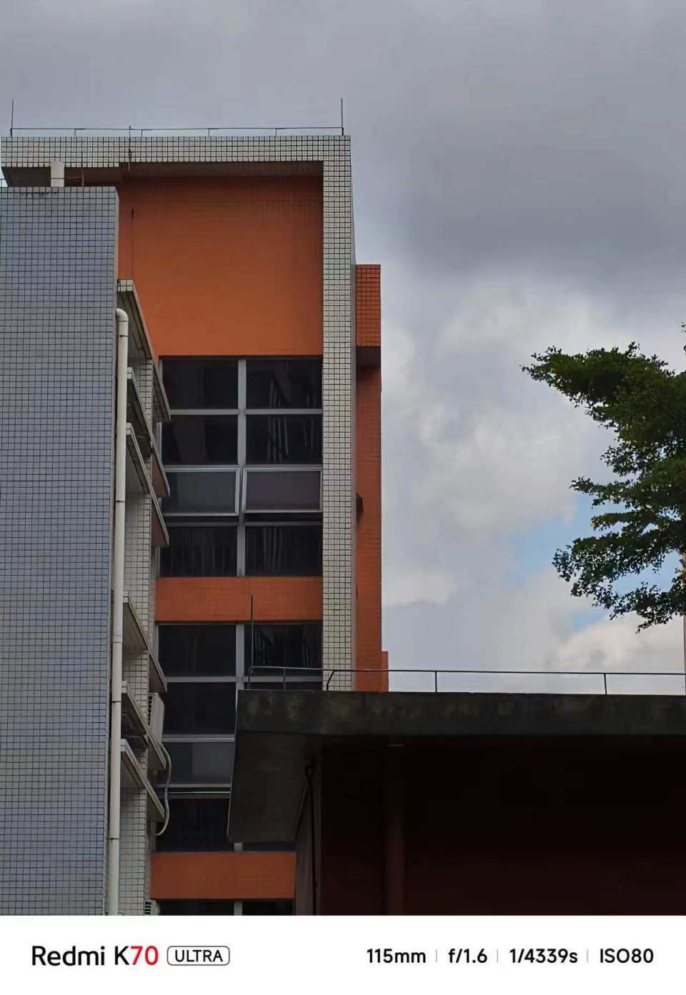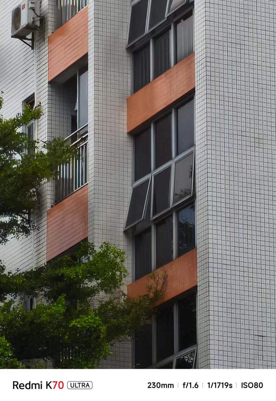 当然,考虑到K70至尊版用上了小米AISP,那么小雷也想看看它在数码变焦下的表现如何。可以看到,115mm焦段(5X)下,K70至尊版依然能保留不少墙体细节,到了230mm焦段才开始出现模糊。这样看,K70至尊版从23mm到115mm焦段的范围都属于能够随手出片的焦段。