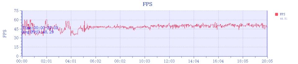 在开启超帧模式下,K70至尊版的渲染帧率大概在48FPS左右,实际游戏三倍插帧后大概在144FPS左右,在20分钟的测试过程中,最开始由于误操作返回了桌面和切换应用的部分影响了帧率的表现,但在4分钟左右进入到跑图和打怪阶段时帧率就开始愈发稳定,直至最后的波动都不大。