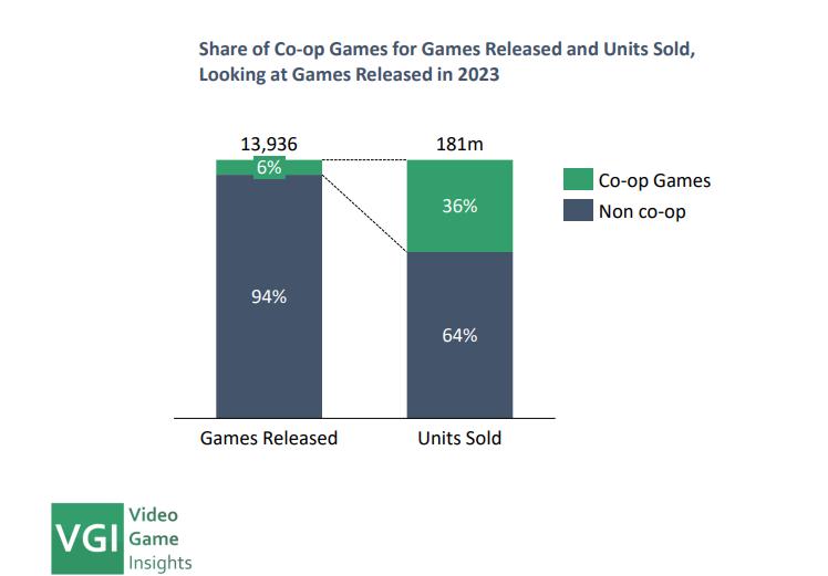 1.合作游戏继续保持着增长势头。2024年上半年Steam用户评测数超过1000条的232款新游戏中,合作游戏共有51款,占比超过21%。市场研究机构VG Insights的数据则显示,在去年Steam商店的游戏总销量中,合作游戏的销量占比高达36%。
