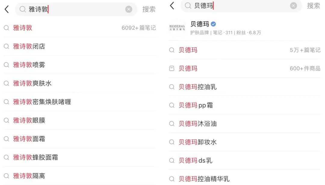 从小红书上来看,雅诗敦相关笔记仅6000+,而凭借卸妆水一炮而红的贝德玛BIODERMA关联笔记达5w+。