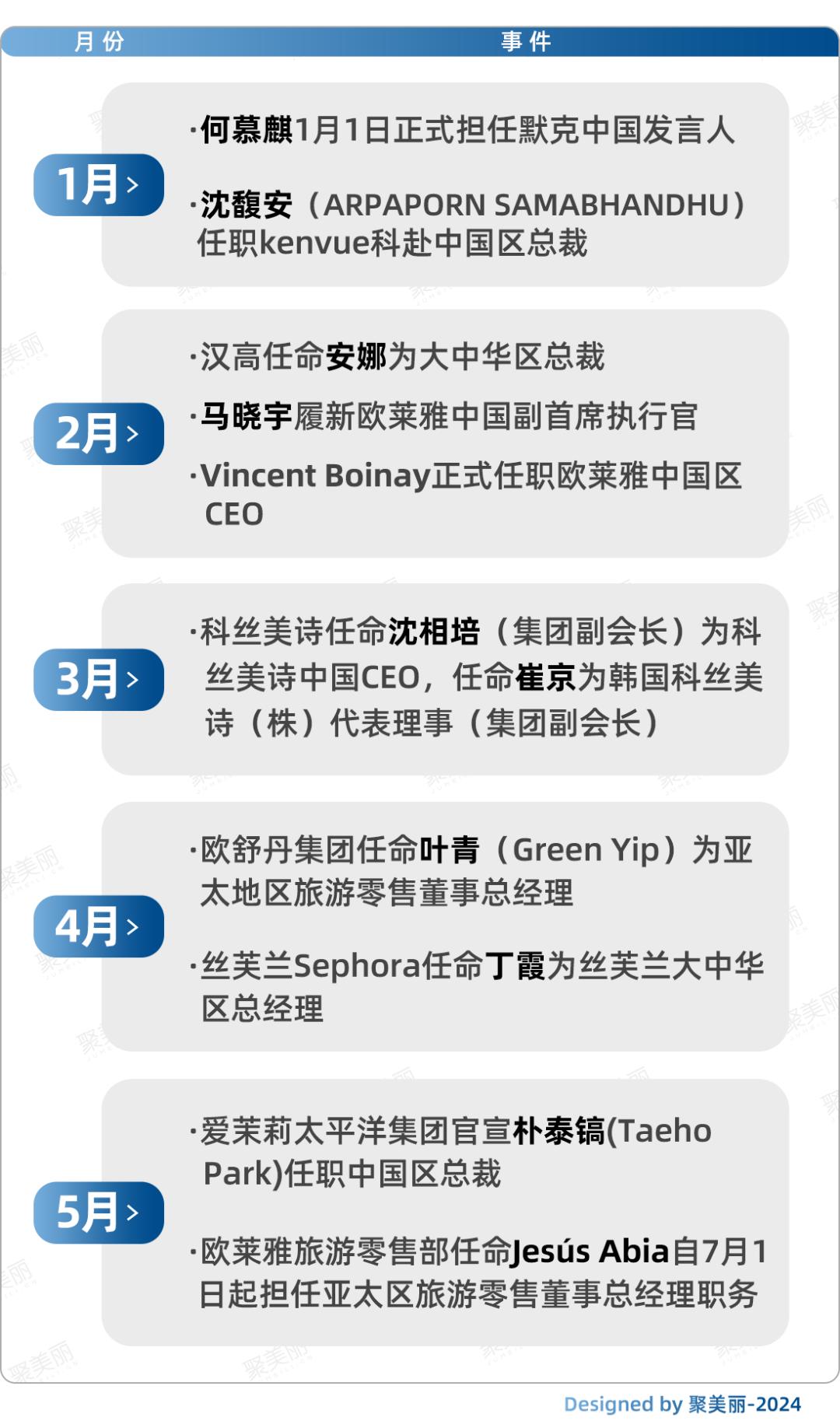 据聚美丽不完全统计,今年上半年涉及中国市场的人事调动有10起,其中涵盖品牌商、零售商、代工厂、原料商等多个产业链路角色。