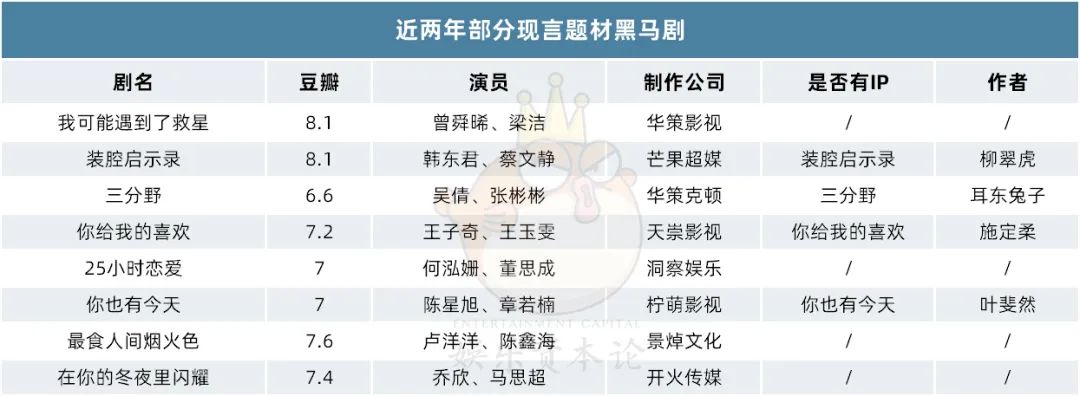 不可否认的是,现言剧是一些年轻公司的入门首选。