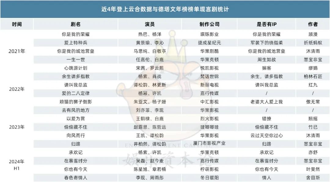 古偶剧几乎是每个季度保底一部爆款,现言剧平均下来一年半出圈一部。