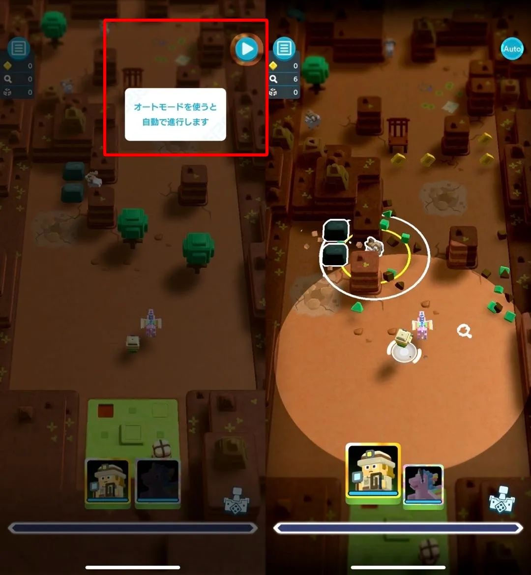 只要点击自动战斗按钮(图左 1 红框圈出),整个开图部分都会自动进行 | 图片来源:PANDOLAND