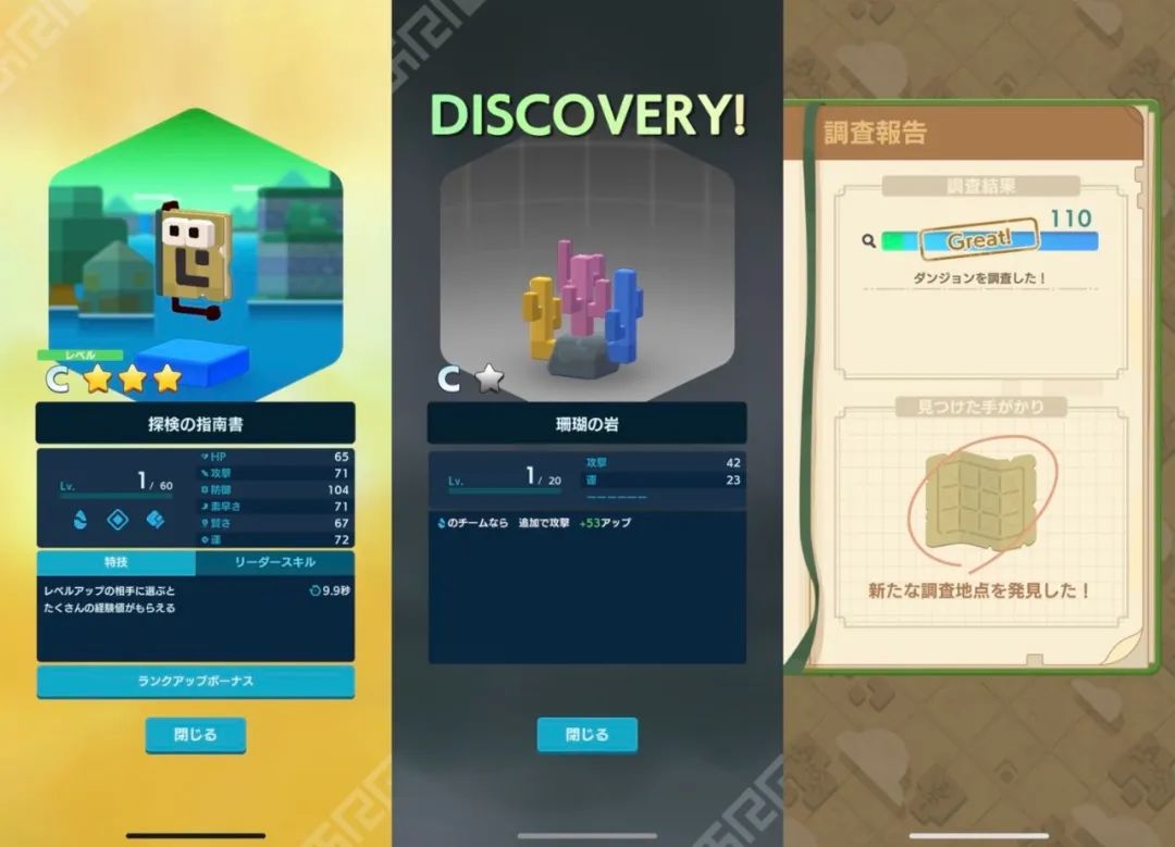 探险完成后的奖励包括队员(左图)、装备(中图)以及其他地区的地图(右图) | 图片来源:PANDOLAND