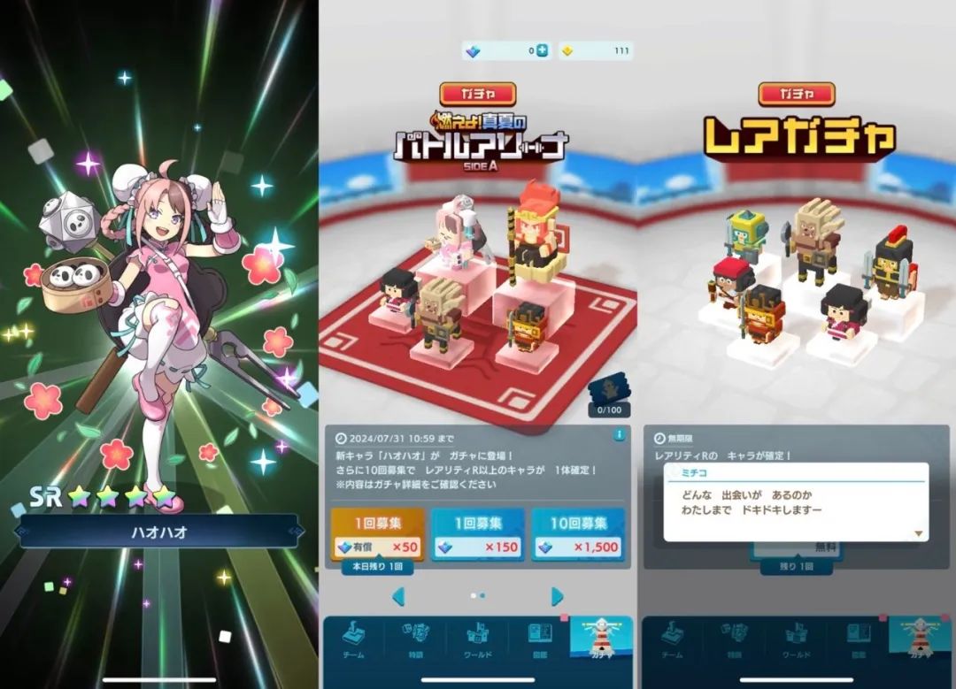 此外,和日本市场近年来一直很有人气的二次元画风 RPG 不同,「PANDOLAND」的人物都是方方正正的 Q 版造型,场景简介颜色清新,画面更像「我的世界」。