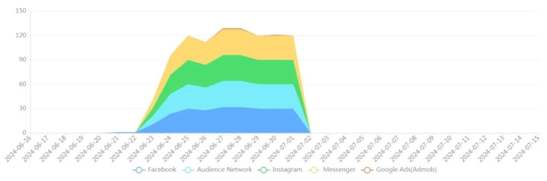 「PANDOLAND」投放的素材创意数量在6 月 22 日-7 月 2 日期间迅速增长 | 图片来源:广大大