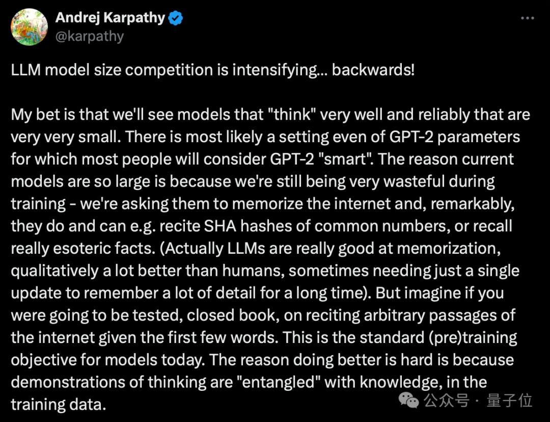 这不,大神Karpathy火速发了篇小作文,做出开头提到的这么一句判断,并进一步解释: