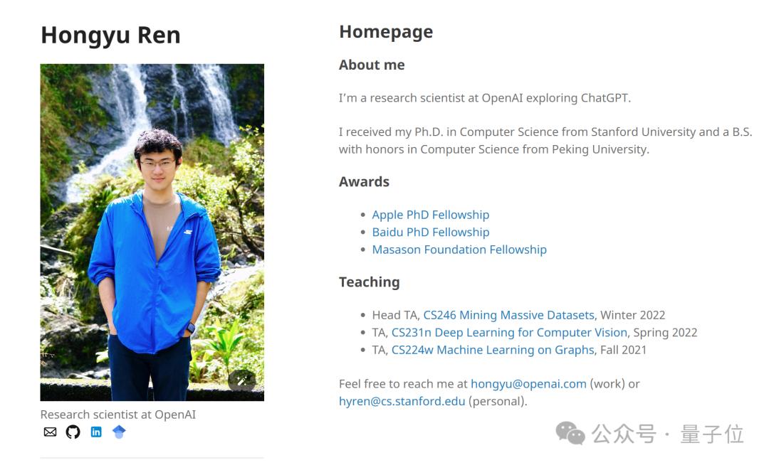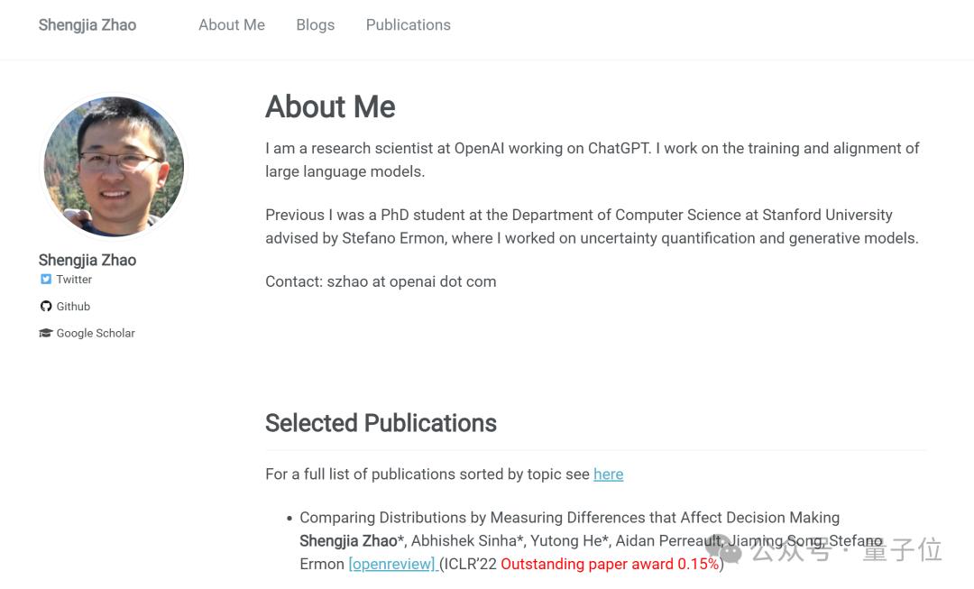 Shengjia Zhao,OpenAI研究科学家,方向为ChatGPT的训练和对齐。他于2022年加入OpenAI,博士毕业于斯坦福大学计算机科学系,本科毕业于清华大学。