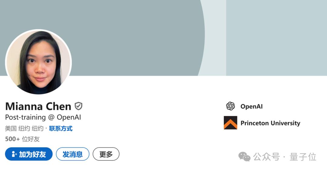 项目经理Mianna Chen,也是GPT-4o的项目经理。她于2023年12月加入OpenAI,之前在Google和DeepMind担任产品经理。她毕业于普林斯顿大学,也是沃顿商学院的MBA。