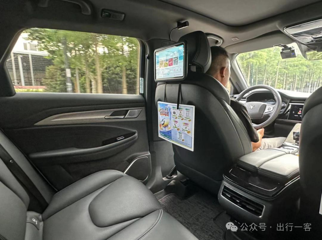 为了保证行驶安全,乘客只能坐后排,我们看到一些没有配备安全员的运营地区,在前后排中间放置了透明隔板,而我们乘坐的这辆有安全员的萝卜车没有隔板。