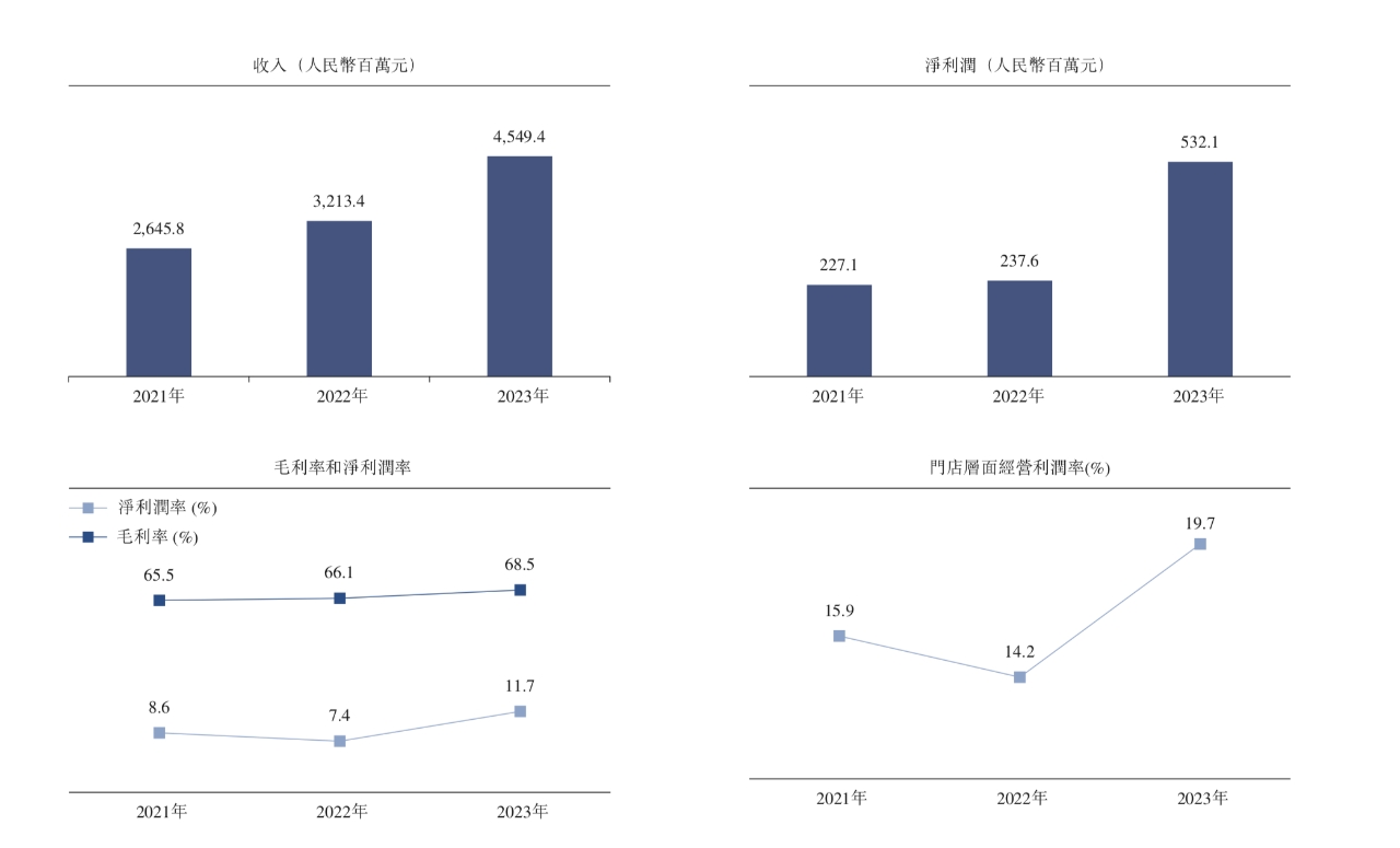 人均消费50-70元,小菜园成功抓住了大众便民餐饮市场的需求。体现到财务数据上,2021年至2023年,小菜园营收分别为26.4亿元、32.1亿元及45.5亿元,复合年增长率为31.1%;净利润分别为2.2亿元、2.4亿元及5.3亿元。