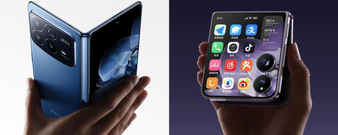 小米也不想放过这个增速迅猛的市场。新一代横折方案小米MIX Fold 4,采用自研的小米龙骨转轴2.0,体积缩减34%,并借助全碳架构实现大幅减重,配置上支持有线、无线双充,搭载第三代骁龙8移动平台与5100mAh电池,起售价8999元。