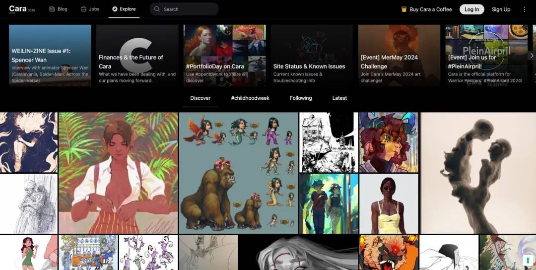 对于平台上展示的作品,Cara 目前甚至不接受 AI 生成的作品,因为现有 AI 模型均涉及侵权问题,所以生成出来的作品或多或少存在「原罪」。