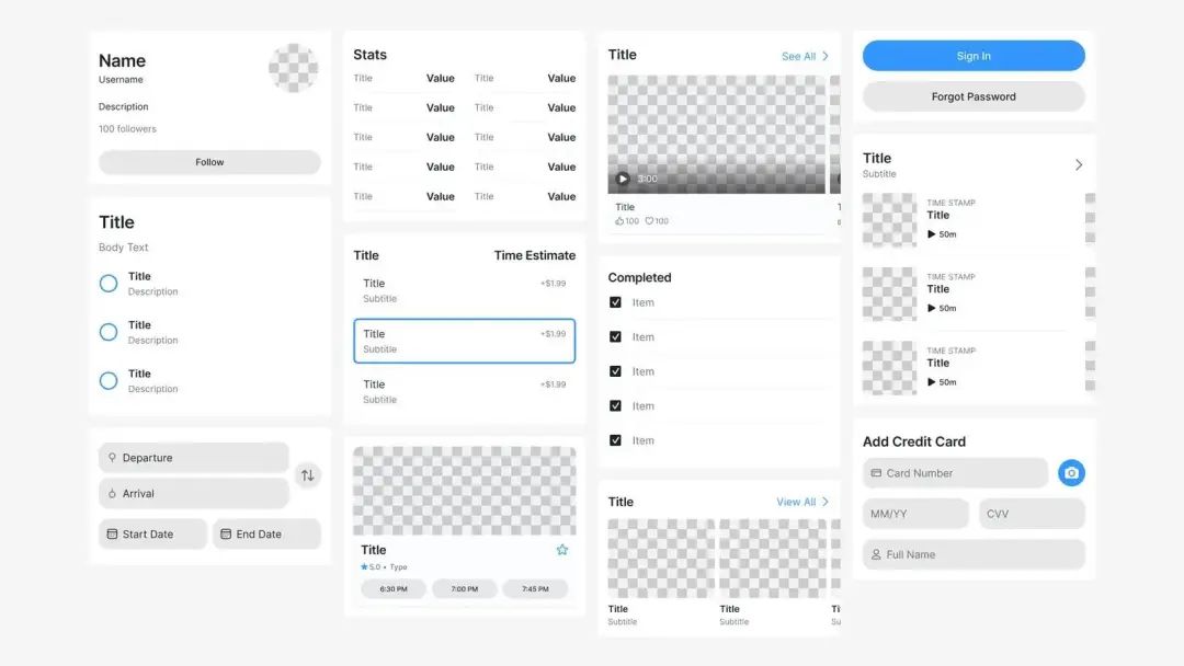 首先,Figma 付费找人设计了两套设计系统(一套面向手机端应用,一套面向电脑端),其中包括了数百组可用于多样化设计的模块,同时也付费做了模块组合设计的示例。