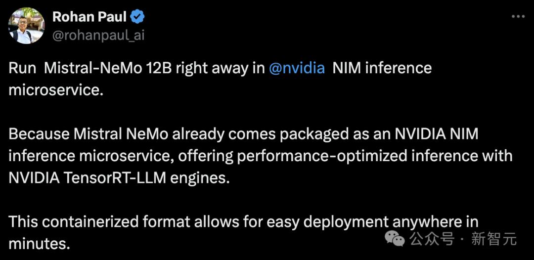有网友已经迫不及待在英伟达NIM推理微服务中运行了Mistral NeMo 12B。