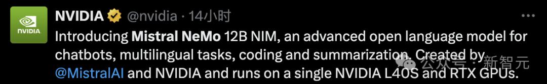 最新发布的小模型Mistral NeMo 12B,瞄准企业用户的使用。