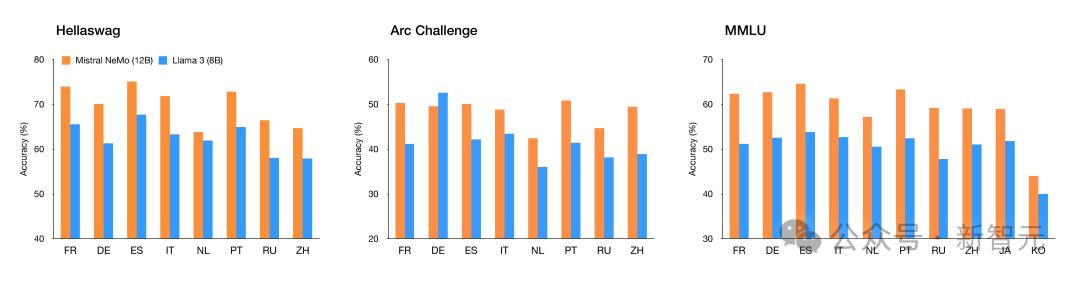 从整体性能上来看,Mistral NeMo在多项基准测试中,击败了Gemma 2 9B和Llama 3 8B。