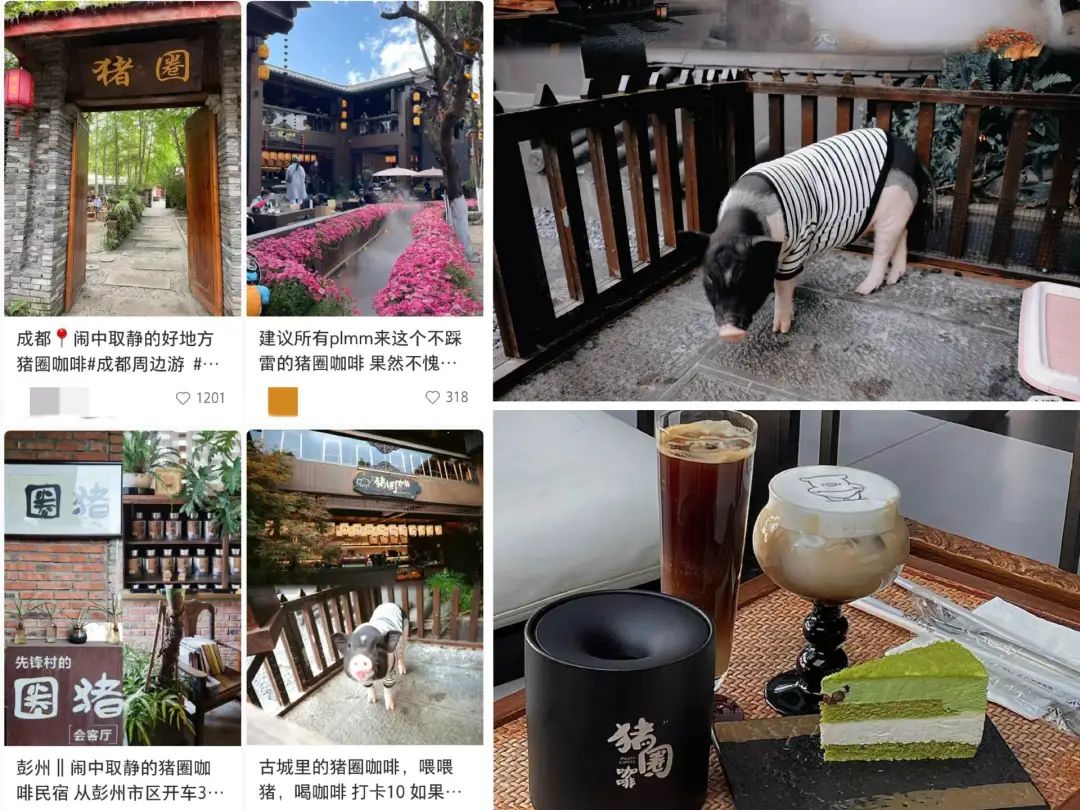 四川成都都江堰就有个真正的“猪圈咖啡”,咖啡店由废弃猪圈改造而生,花盆是猪食槽、凳子是打谷桶,人称“乡村星巴克”,年接待游客超过20万人。