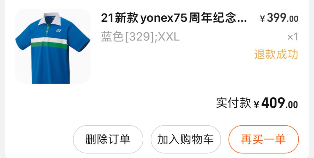 周宇飞立刻找到此前一直购买羽毛球装备的经销商订货,得到的答复却是:“我们也不知道什么时候有货、有多少货”。周宇飞认为这或许只是该经销商囤货惜售的说法,“毕竟是纪念款,之前买很多足球球衣的时候每逢纪念款也会有这种情况,或许等等就会有了。”