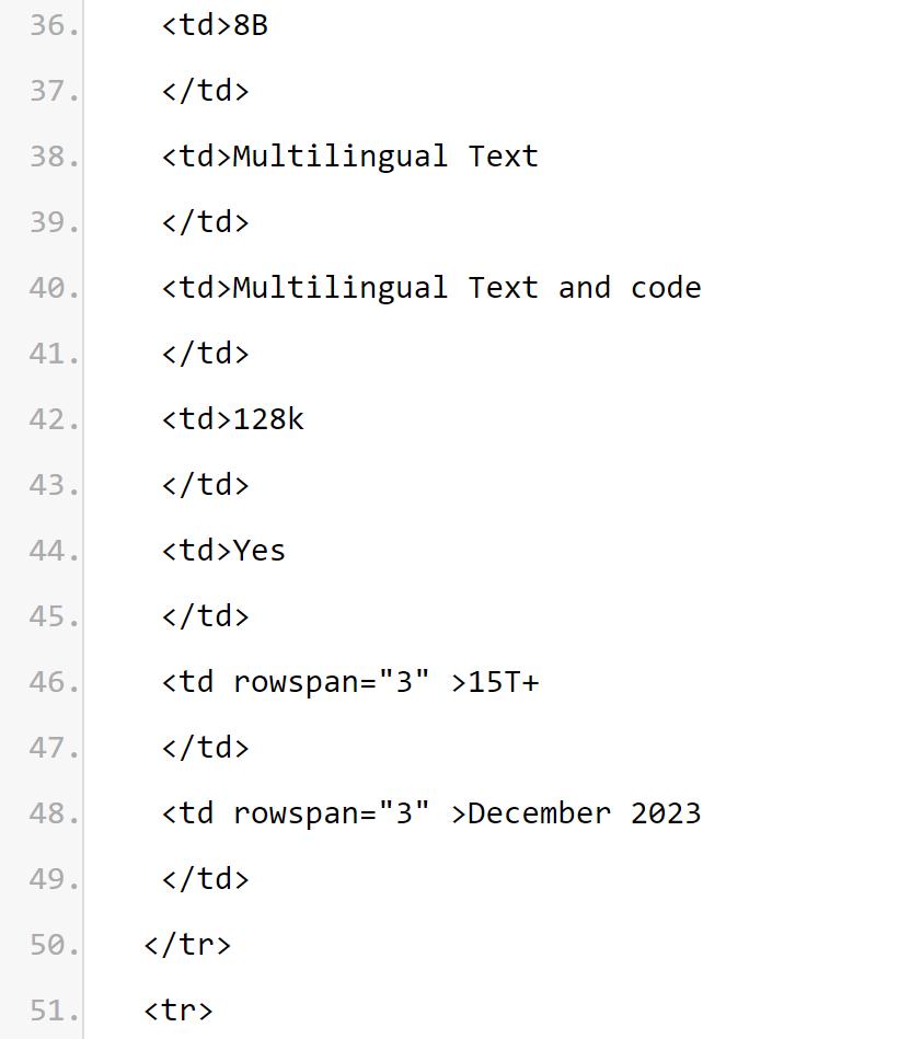 模型使用了公开来源的 15T+ tokens 进行训练,预训练数据截止日期为 2023 年 12 月;