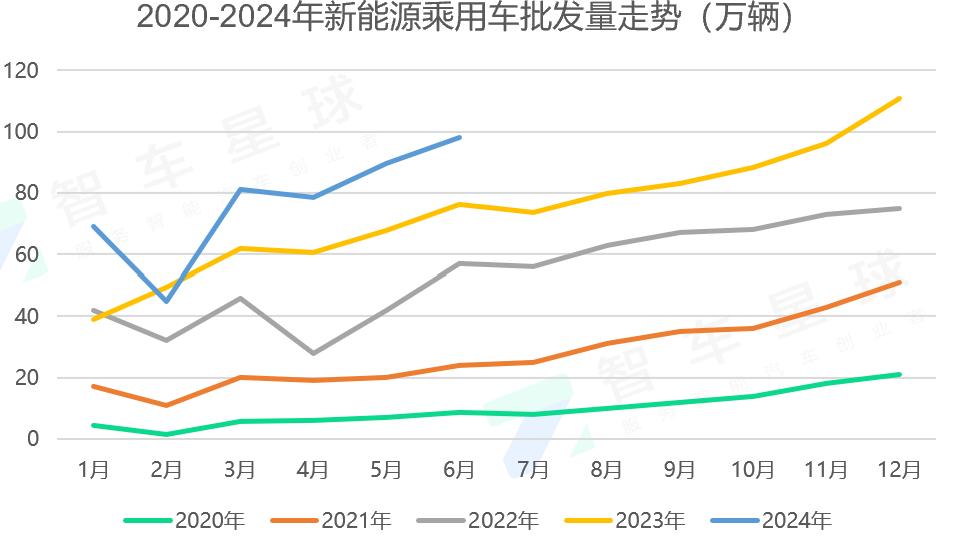 2024年过半,新能源乘用车市场并没有在年中出现大幅拉升,而是继续保持着平稳增长的走势。