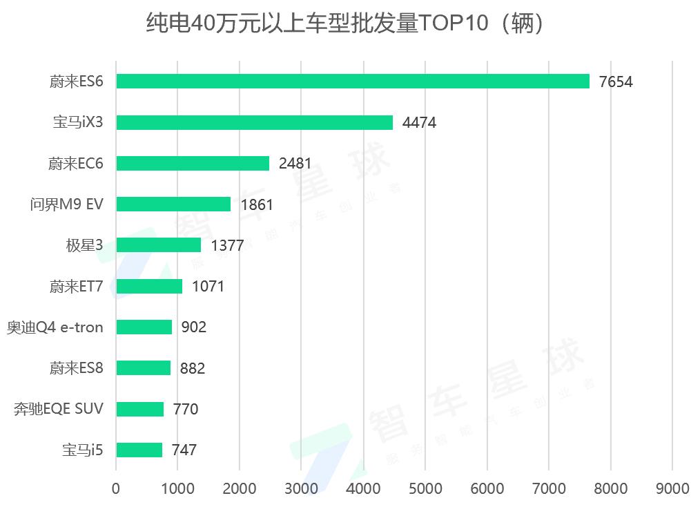 纯电40万元以上市场,整体表现保持了5月的水平。