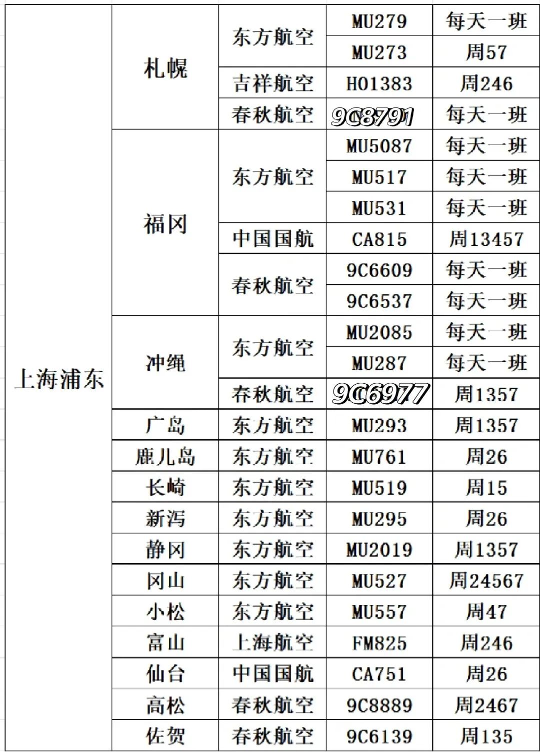 例如,东航执飞日本静冈,冈山,小松等航点,上海鹿儿岛直航也即将恢复,名副其实的日本“村村通”,春秋航空则与东航互补,执飞高松和佐贺两个独飞航点。