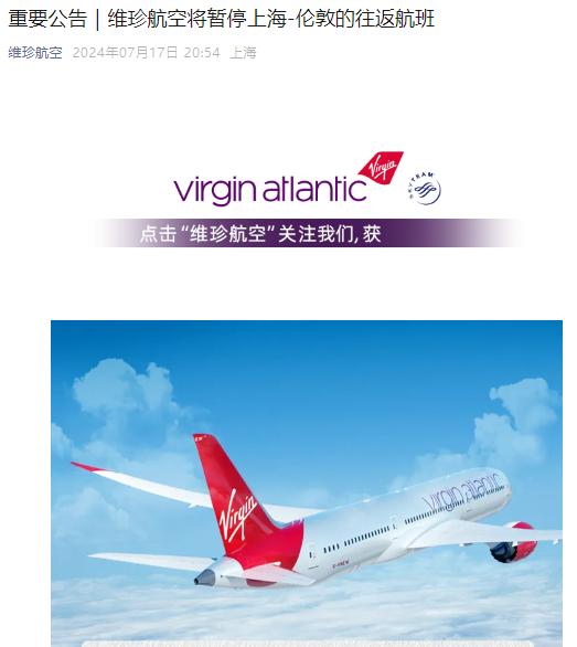 上周,英国的维珍航空突然无预警宣布宣布撤出上海。