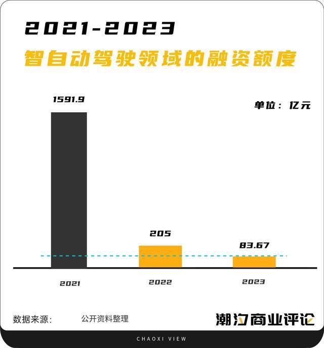 相关统计数据显示,2022年以来,自动驾驶领域披露的融资额度由2021年的1591.9亿元锐减至205亿元,直接缩水至原先的13%,2023年的情况也并未得到好转。