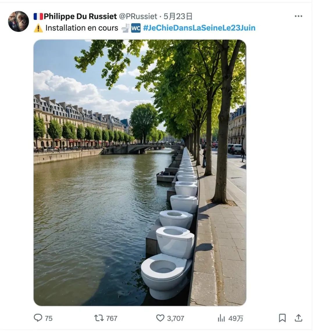 因为花了大量纳税人的钱治理塞纳河,但大肠杆菌依然超标,法国人早就积累了一身怨气,于是愤怒的法国人整了个大活——他们要在塞纳河里聚众拉屎。