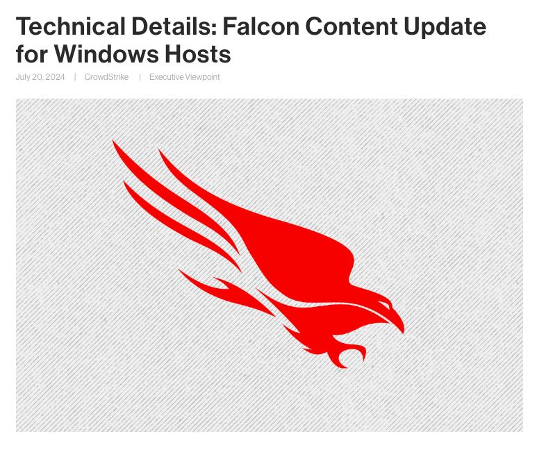 事情的起因是这样的,有家叫做 CrowdStrike 的网络安全公司,他们检测到了新的网络攻击技术后,就对软件进行了例行的更新推送。