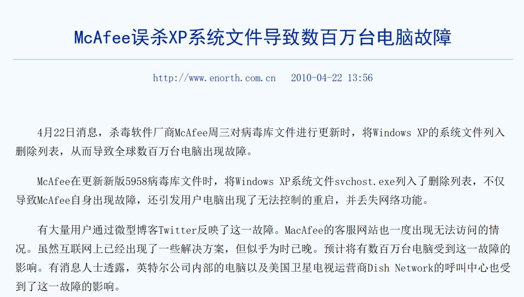 结果。。。这一更新直接把所有用了他们家产品的设备干瘫痪了。