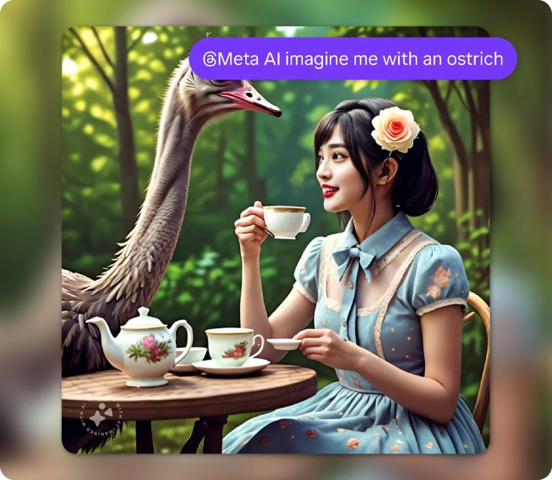首先看看视觉生成,Meta AI推出“想象我(Imagine Me)”图像生成提示功能,支持用户在Meta AI聊天中输入“想象我”并添加提示,例如“想象我是皇室成员”或“想象我在一幅超现实主义绘画中”,就可以生成图像并与朋友和家人分享。