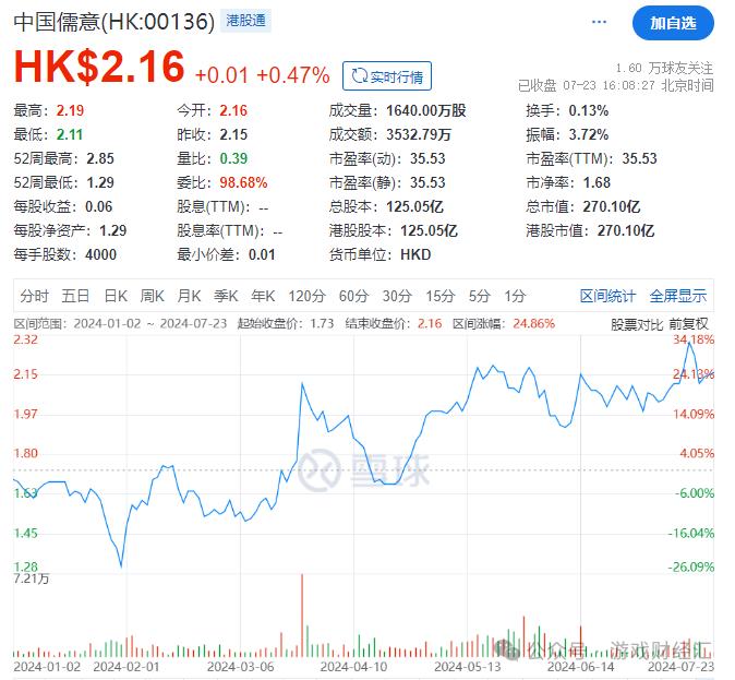 从资本市场表现来看,中国儒意今年累计涨幅超24%,与腾讯年内涨幅不相上下(腾讯年内涨幅25.8%),在整个港股市场中也算出类拔萃。
