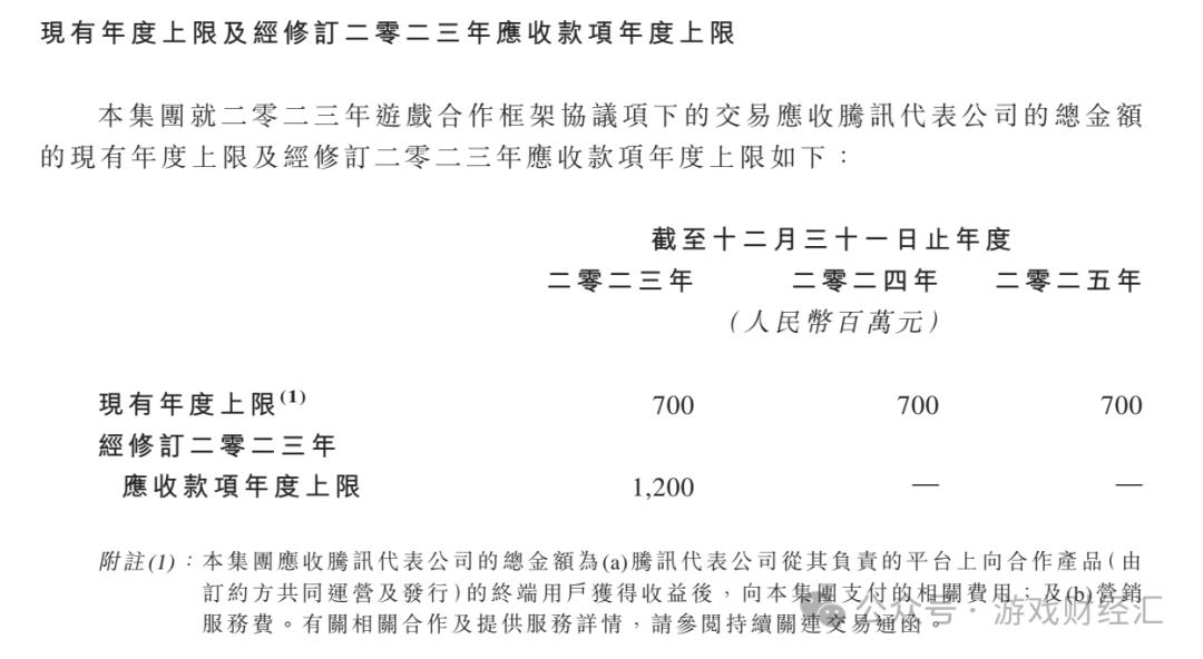 2023年2月,中国儒意与腾讯签订游戏合作框架协议,就游戏代理发行开展合作。2023年11月,中国儒意公告上调2023年游戏合作框架合作协议上限,将 2023年应收腾讯代表公司的总金额上限从7亿元提升至12亿元。