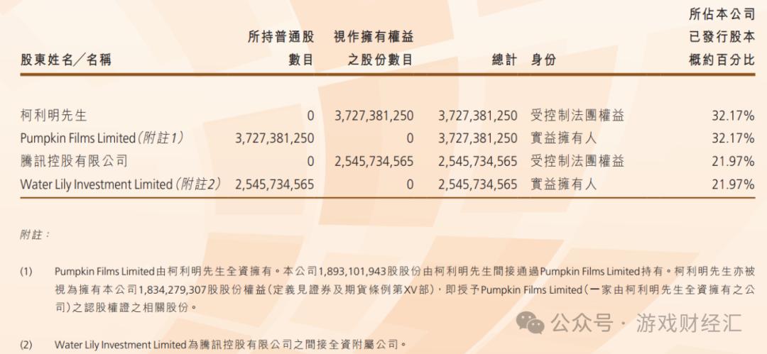 根据2023年财报,腾讯对中国儒意持股超过40%,是公司重要的控股股东,2023年为集团贡献15.36%的收入,也是中国儒意前五大客户之一。