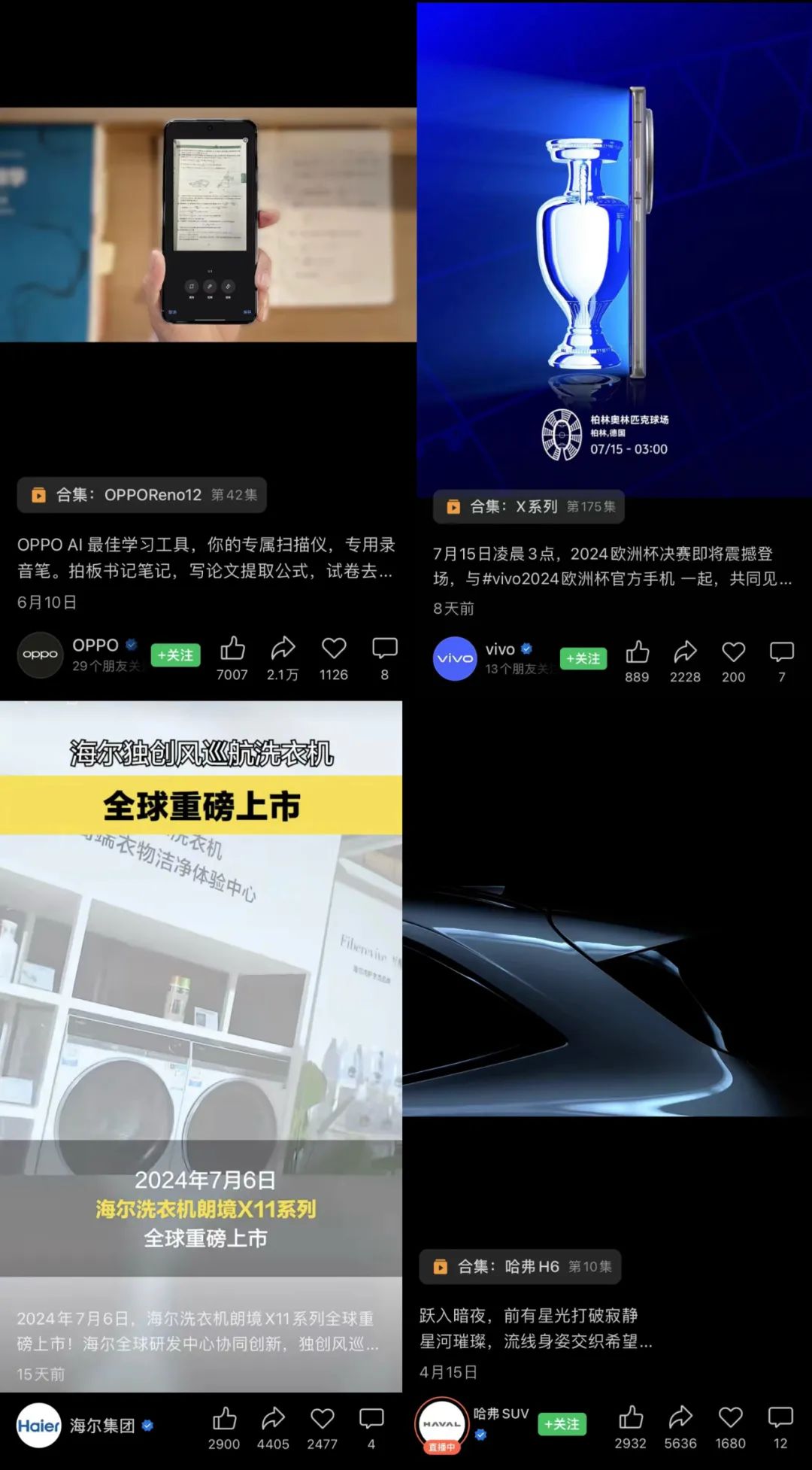 ◆第一,转发、点赞和评论的数据关系,一般是100:200:10的关系,可以去翻看一下小米和华为的短视频号。